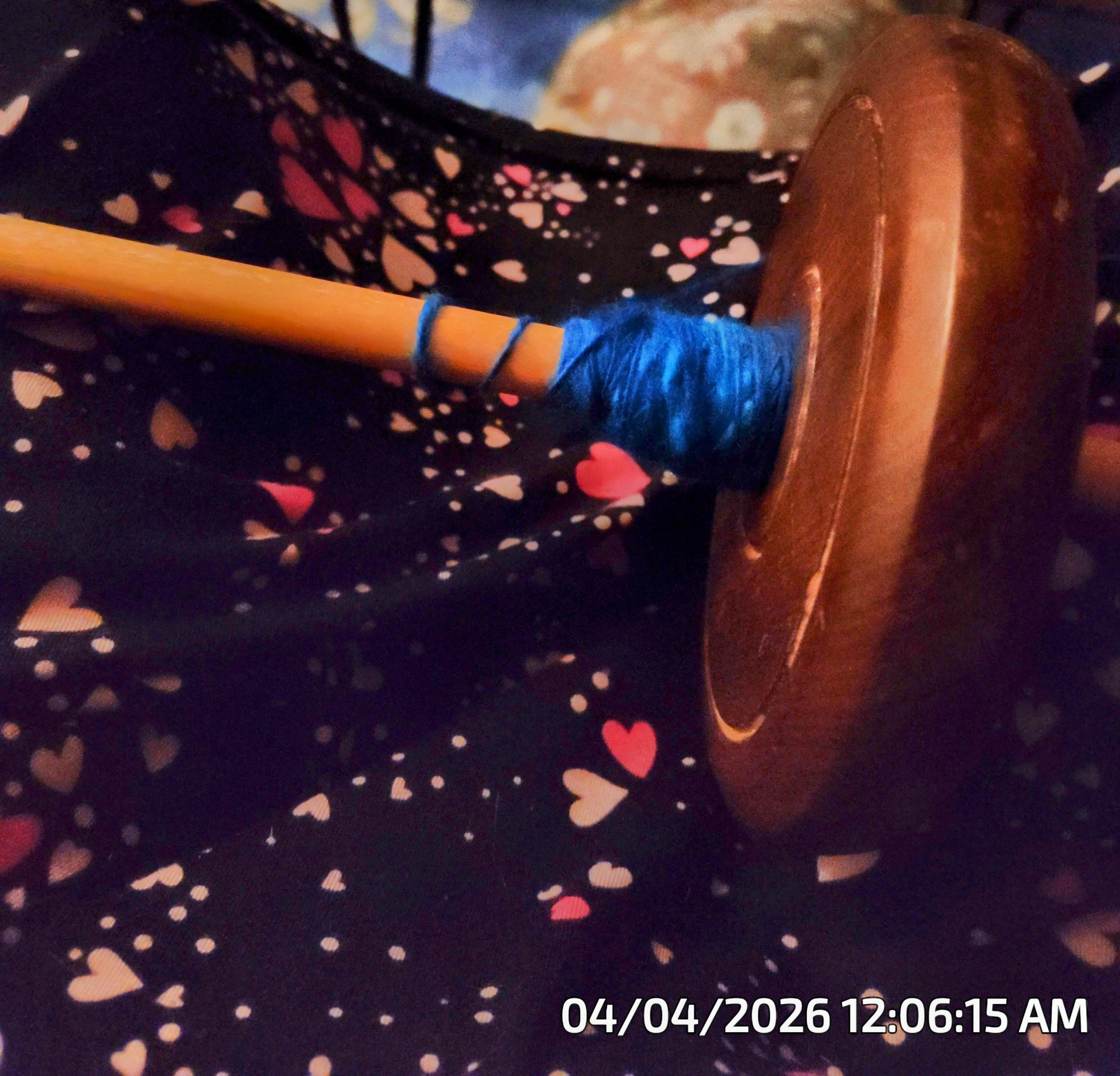 I’ve started spinning that huge stash of brilliant blue yarn that I spoke of in a previous post and I’m excited to see how it turns out.